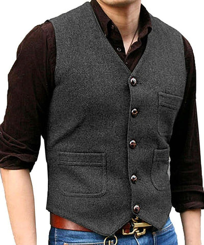 Men's Suit Formal V Neck Wool Herringbone Tweed Casual Waistcoat Formal Business Vest Groomman For Wedding Green/Black/Brown