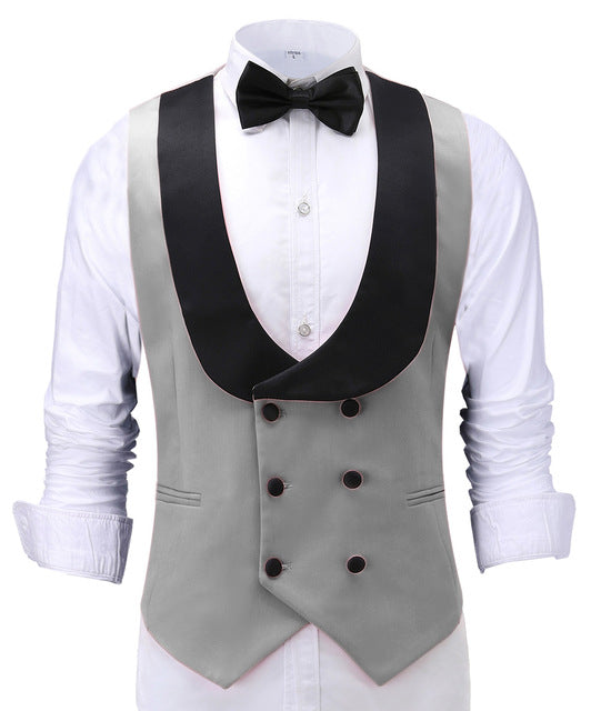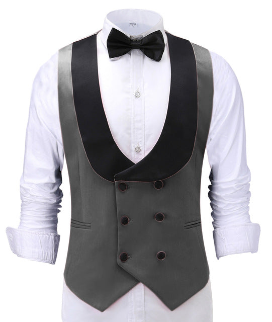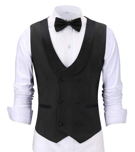 Men's Waistcoat Slim Fit Leisure Cotton Suit Male Gentleman Beckham Business Vest Male Black For Wedding Groomsmen (custom size)